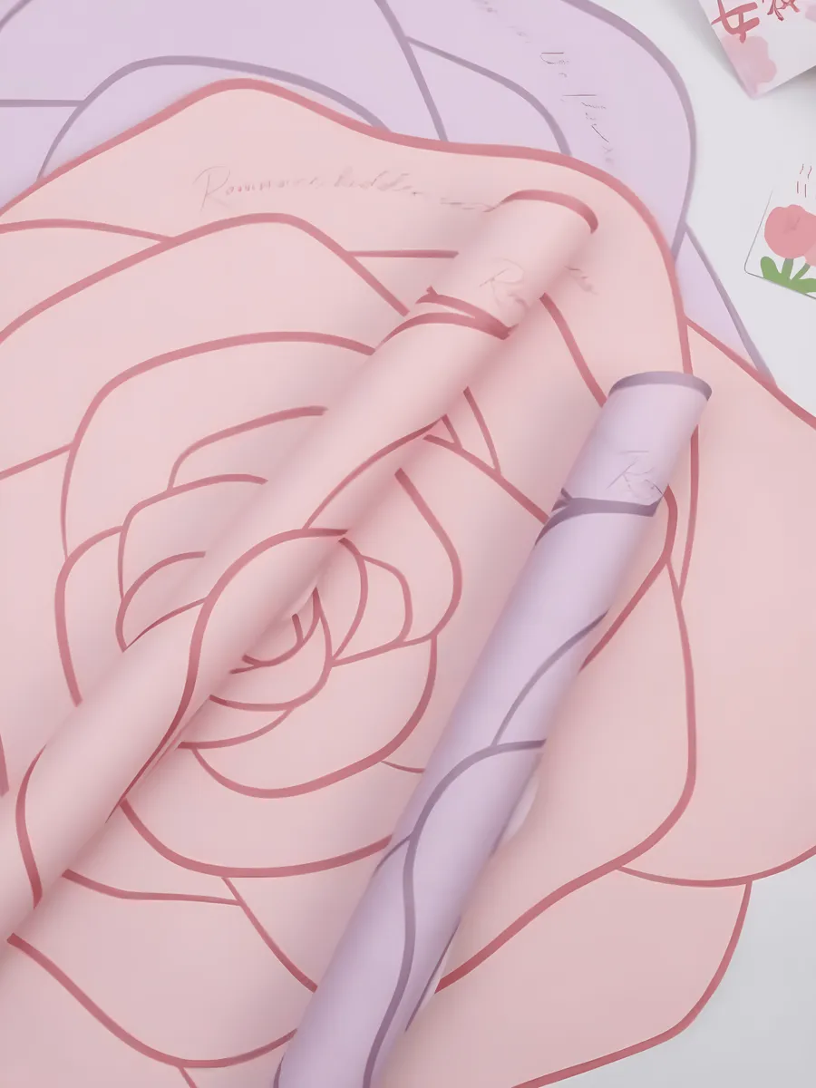 Бумага подарочная матовая 54,5*55 см 10 шт – это идеальное решение для упаковки подарков и цветов, а также в фуд-флористки. Пленка не прозрачная, матовая, однотонная, с рисунком в виде розы.