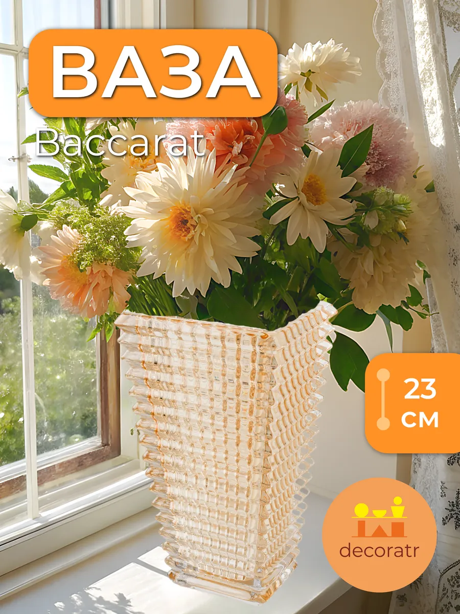 Ваза бакарат прозрачная идеально подойдет для стола или комода, придавая вашему пространству изысканный вид.