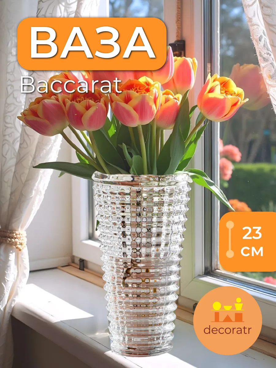 Ваза бакарат прозрачная идеально подойдет для стола или комода, придавая вашему пространству изысканный вид.