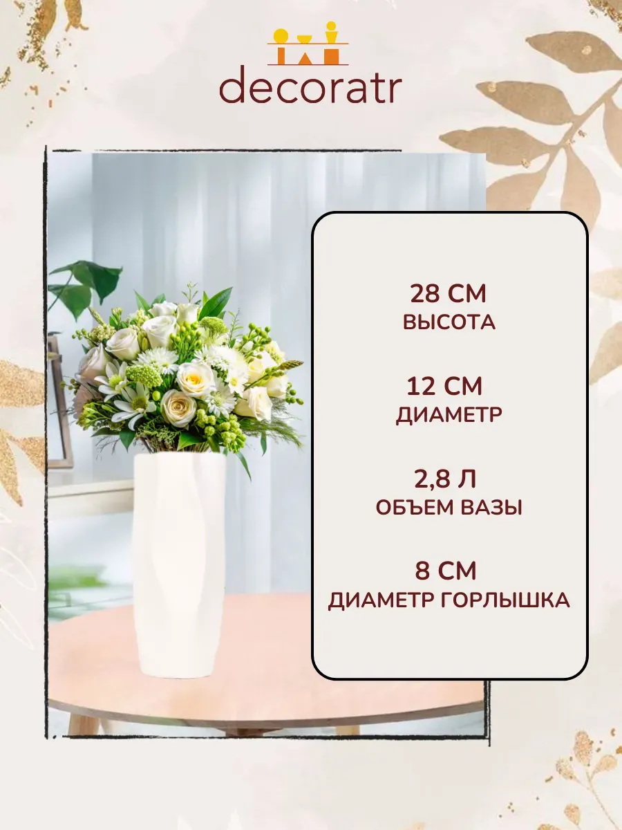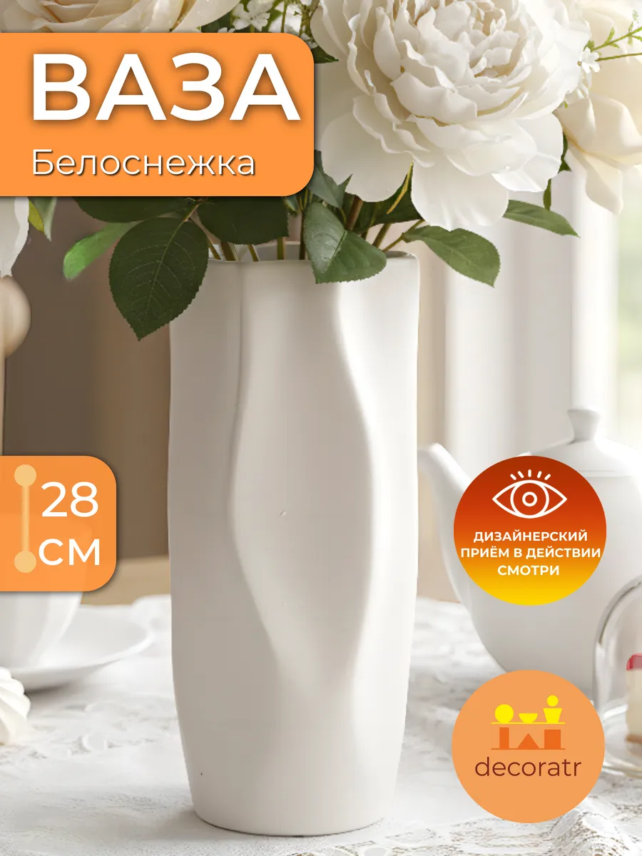 Представьте, как эта элегантная ваза «Белоснежка» высотой 28 см преображает ваш интерьер одним своим присутствием! Вот это да — настоящее воплощение минималистичной красоты, которая никого не оставит равнодушным.