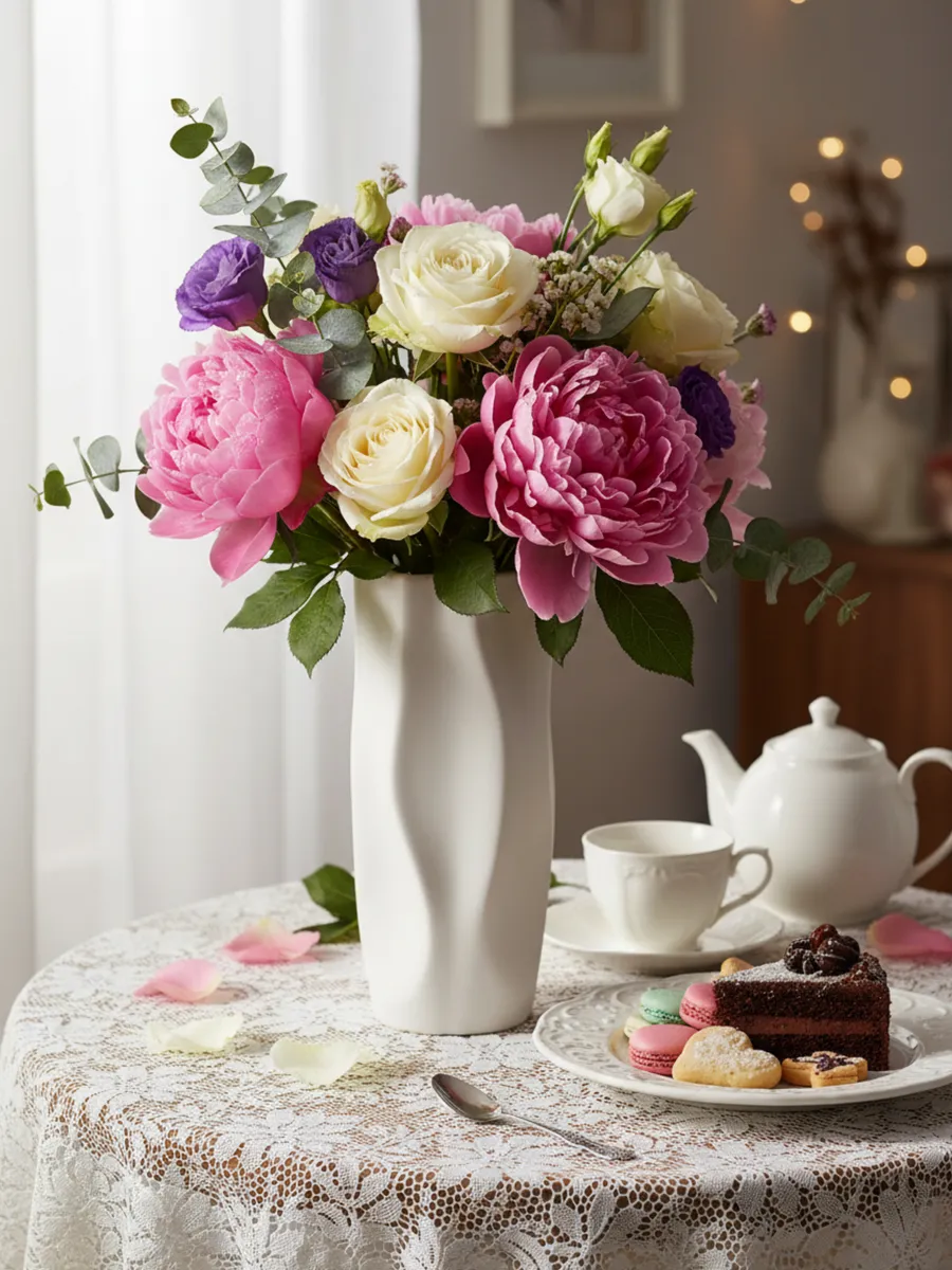 Наш главный декоратор, Елена Морозова, советует: «Белые вазы — это классика, которая никогда не выходит из моды. Поставьте такую вазу на журнальный столик или подоконник, и она мгновенно станет центром композиции. Попробуйте необычный приём — используйте её как самостоятельный арт-объект без цветов, просто как скульптурный элемент».