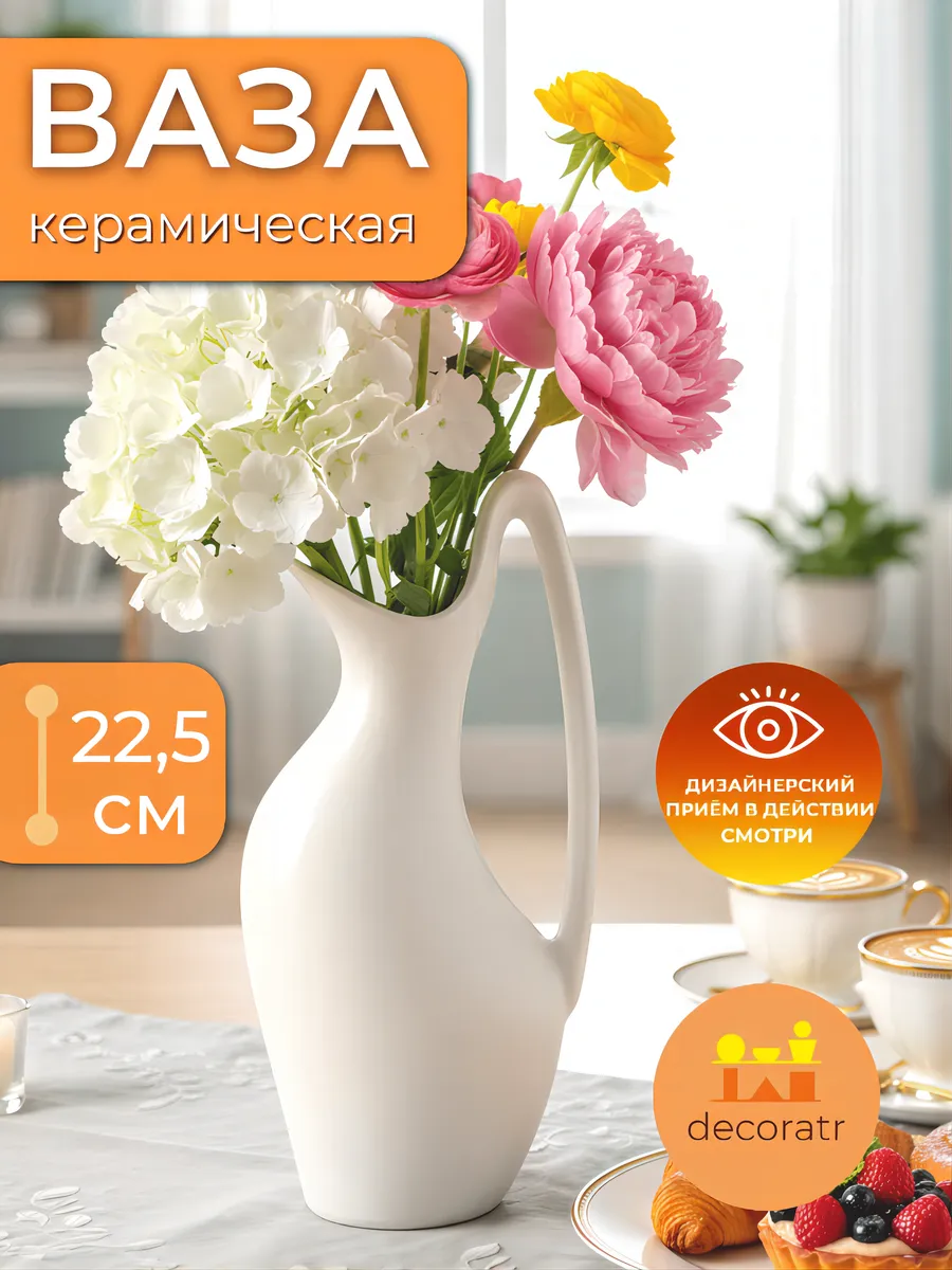 Представьте, как ваши гости замирают в восхищении, увидев эту изящную керамическую вазу высотой 22,5 см! Ваза «Белый кувшин» — это не просто интерьерная ваза для цветов, это настоящее произведение искусства, которое мгновенно преображает любое пространство.
