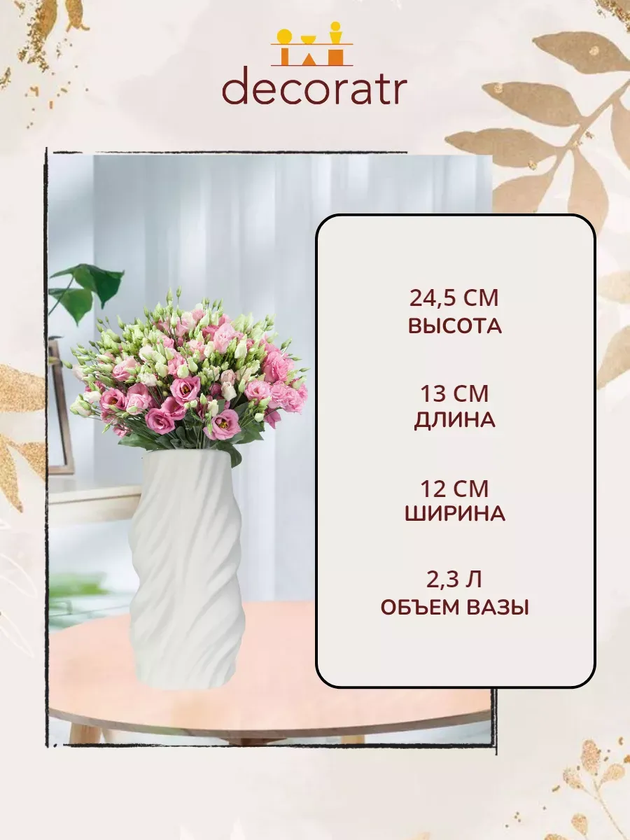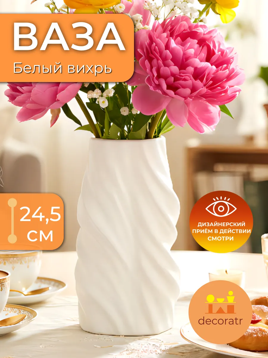 Представьте себе утро, когда солнечные лучи касаются белоснежной поверхности этой изящной вазы высотой 24,5 см, а рельефные спирали создают завораживающую игру света и тени! Ваза «Белый вихрь» — это не просто керамическая ваза для цветов, это настоящее произведение искусства, которое мгновенно преображает любое пространство.