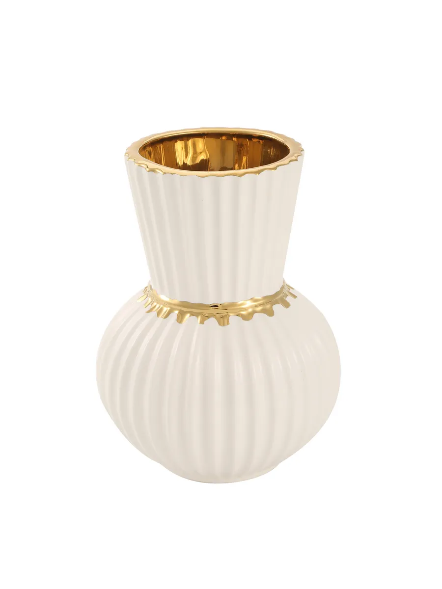 Именно то, что нужно для интерьера в стиле неоклассика или современной классики! Белая керамическая ваза с золотыми элементами станет жемчужиной вашей гостиной, спальни или рабочего кабинета. Она прекрасно впишется в отели класса люкс и рестораны высокой кухни.