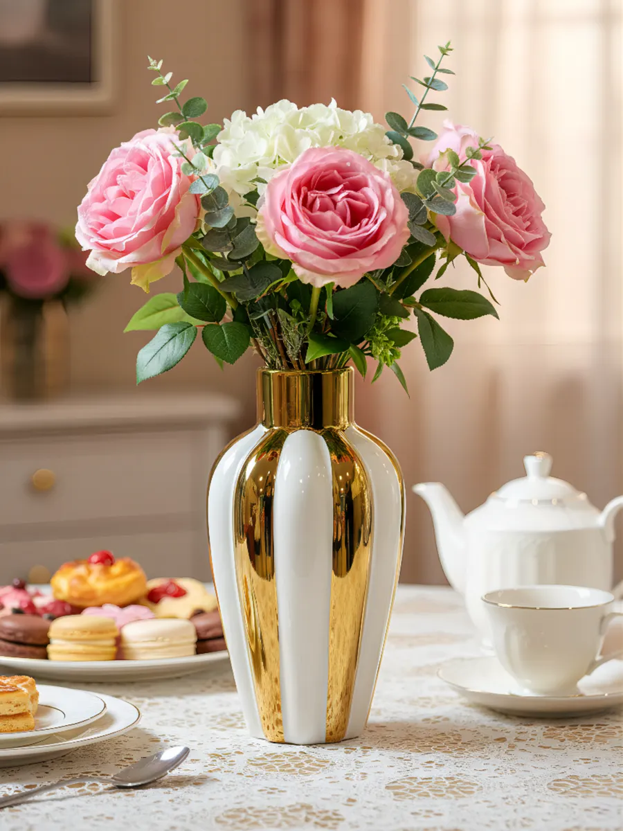 Наш главный декоратор, Марина Светлова, отмечает: «Золотые акценты на белой керамике — это классическое сочетание, которое никогда не выходит из моды. Такую вазу можно использовать не только для живых цветов, но и как самостоятельный арт-объект. Попробуйте поставить её на журнальный столик рядом с книгами в золотистых обложках — эффект будет потрясающим!»