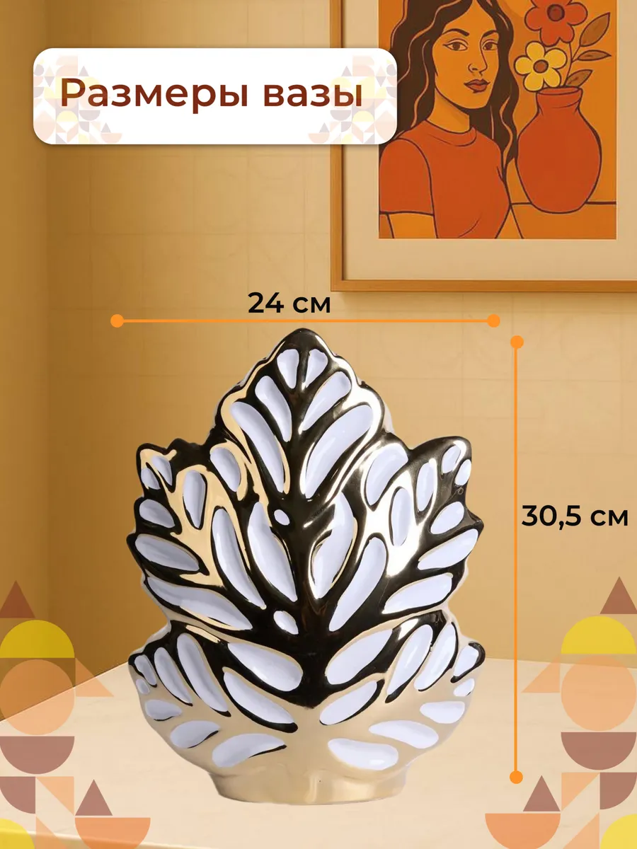 Представьте, как этот удивительный арт-объект высотой 30,5 см мгновенно преображает любое пространство! Ваза «Тропический лист» — это не просто декоративная ваза для цветов, это настоящее произведение искусства, которое дарит ощущение тропического рая прямо в вашей гостиной.