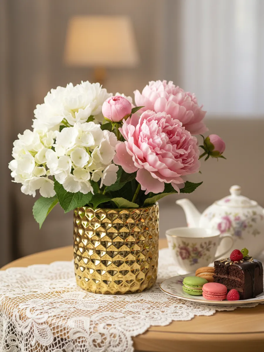 Цилиндрическая форма с широким горлышком делает её универсальной — в неё поместятся и пышные пионы, и изящные сухоцветы. Золотистое покрытие переливается тёплыми оттенками, создавая атмосферу уюта и благородства в любом интерьере.
