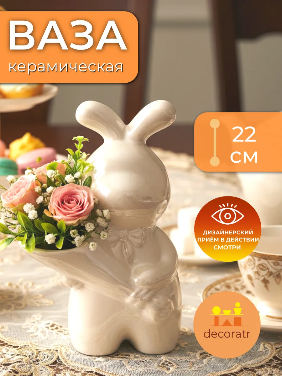 Deco-Decoratr рекомендует использовать эту вазу не только для цветов — она станет отличным держателем для канцелярских принадлежностей или небольших аксессуаров. Устойчивое основание гарантирует, что ваш милый зайчик не опрокинется даже при активной уборке.
