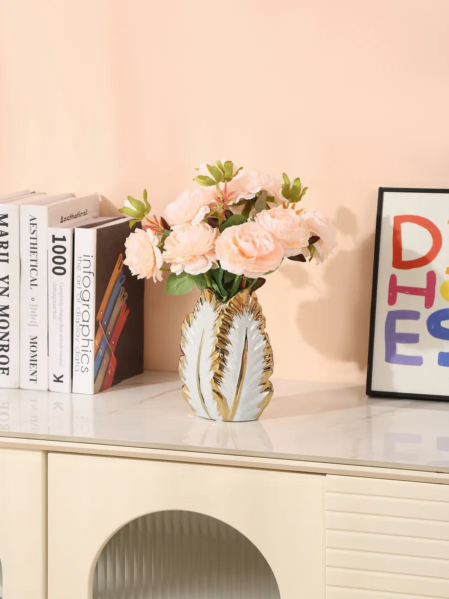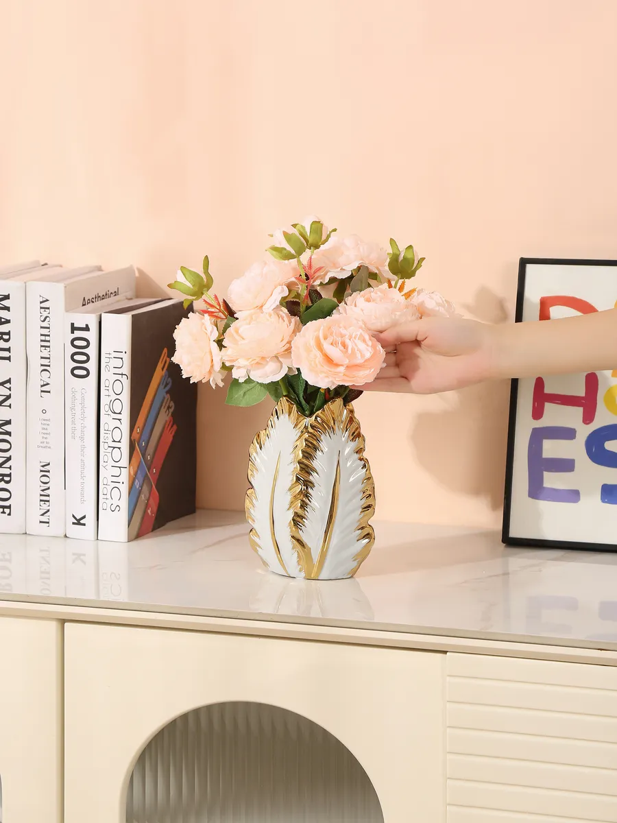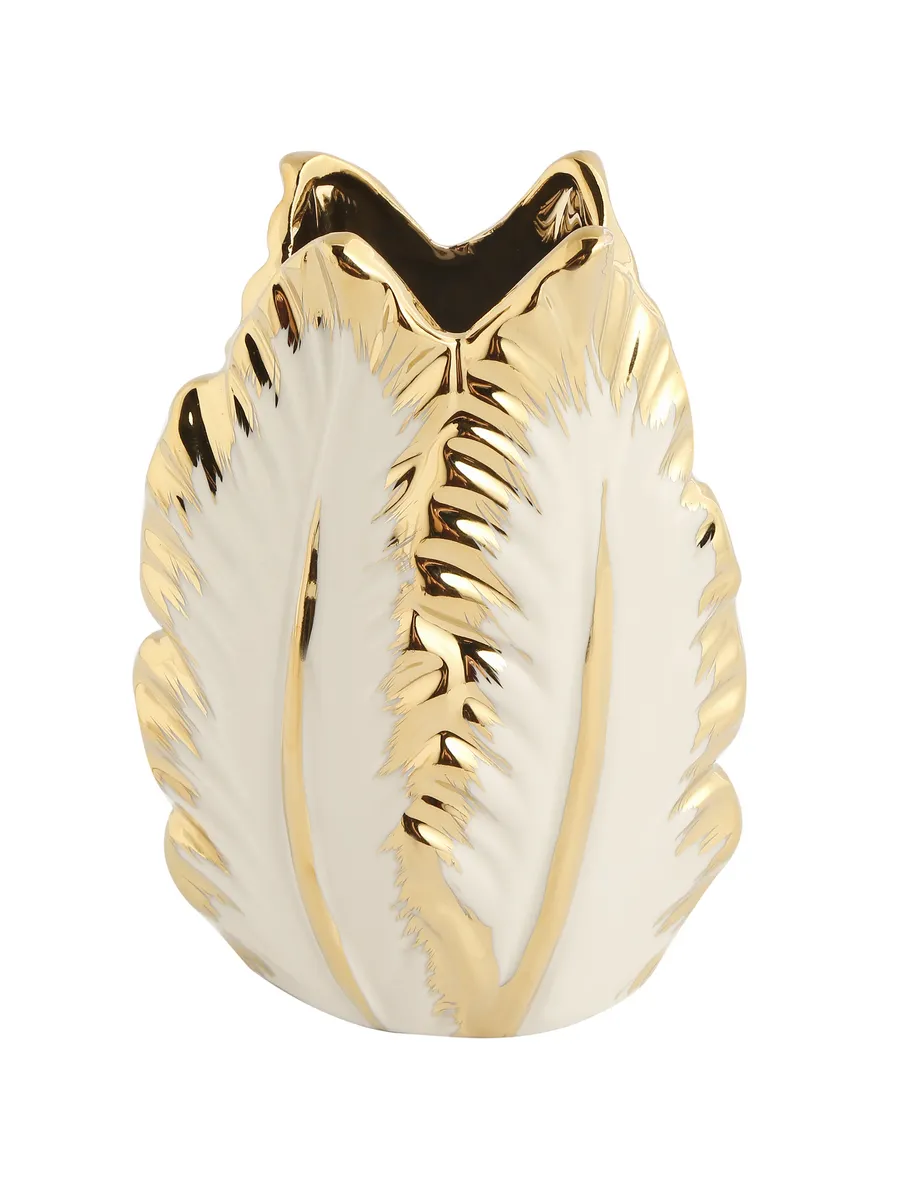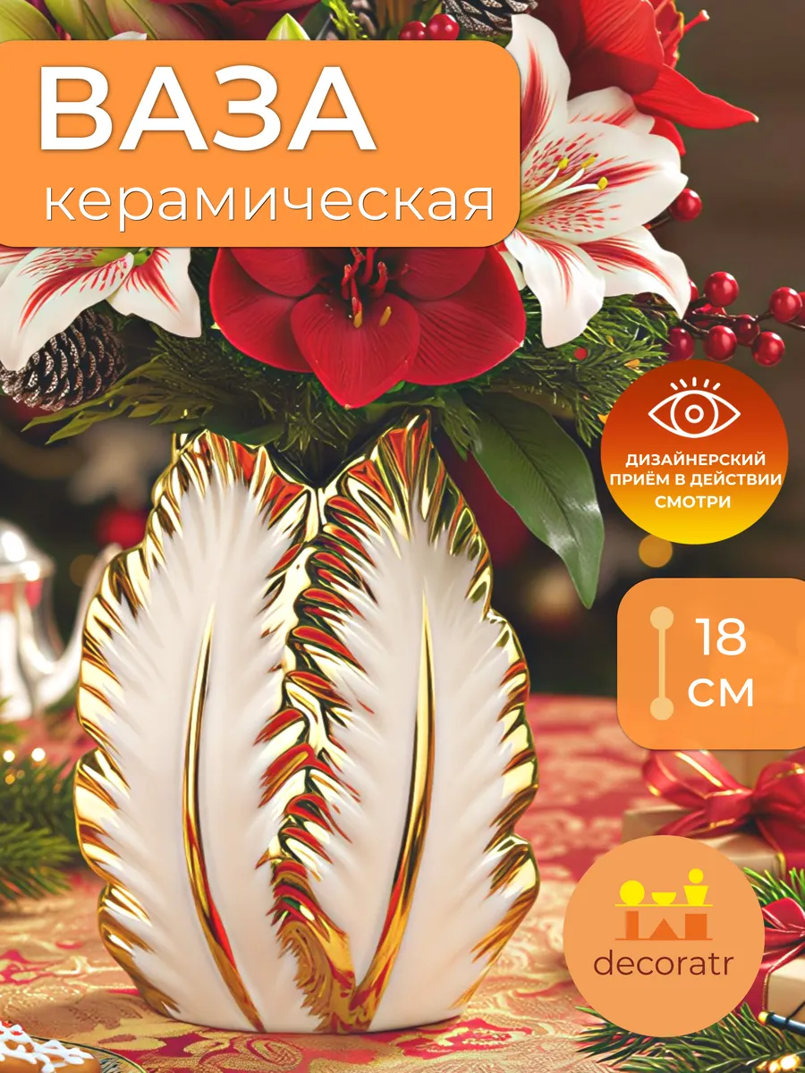 Представьте, как нежные пионы или пышные розы оживают в объятиях этой изящной красавицы! Ваза «Золотое Перо» высотой 18 см — это настоящая находка для тех, кто ценит утончённую элегантность и мечтает о доме, где каждая деталь дышит роскошью и вкусом.