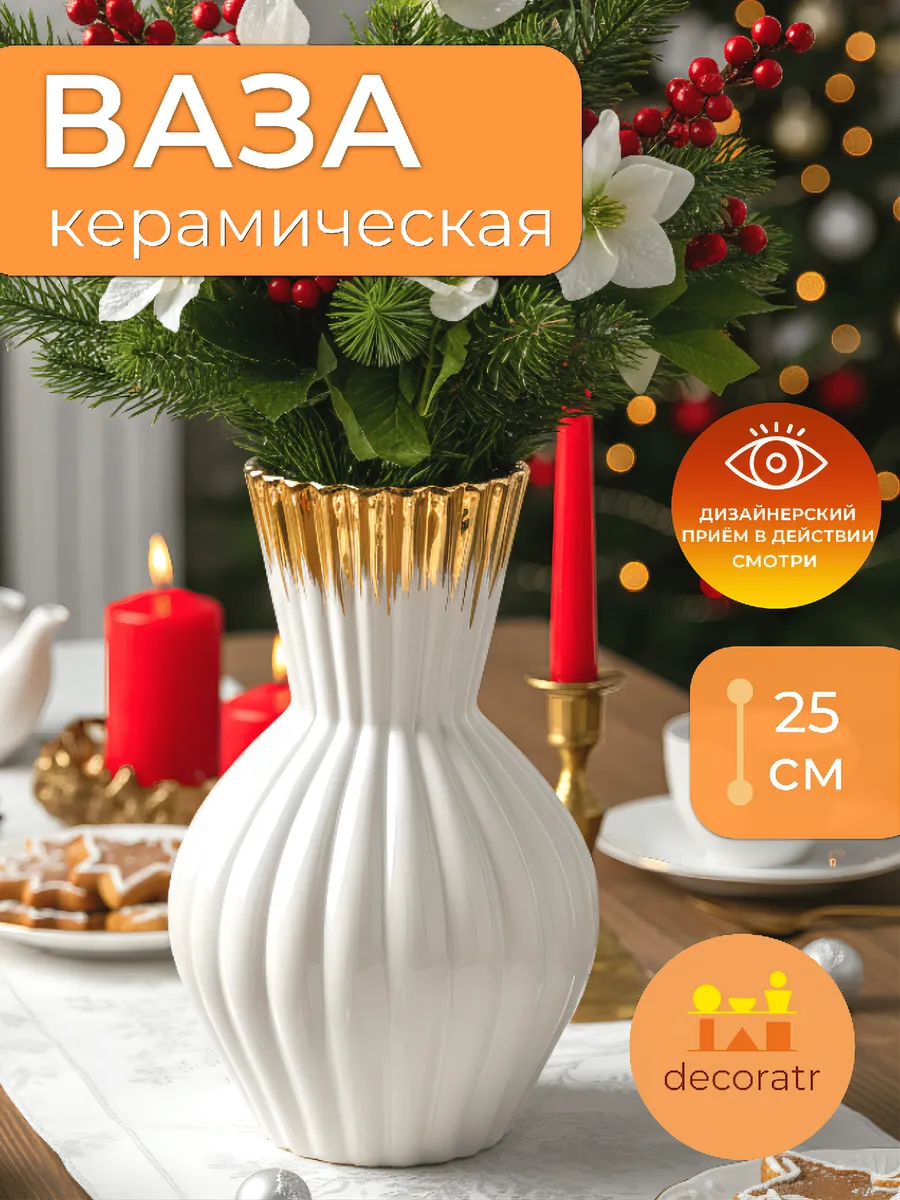 Декоративная ваза белая с золотом — это выбор тех, кто ценит качество и стиль. Не упустите возможность преобразить свой интерьер!