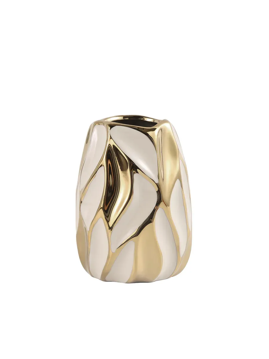 Ваза керамическая для цветов белая золотая 18 см
