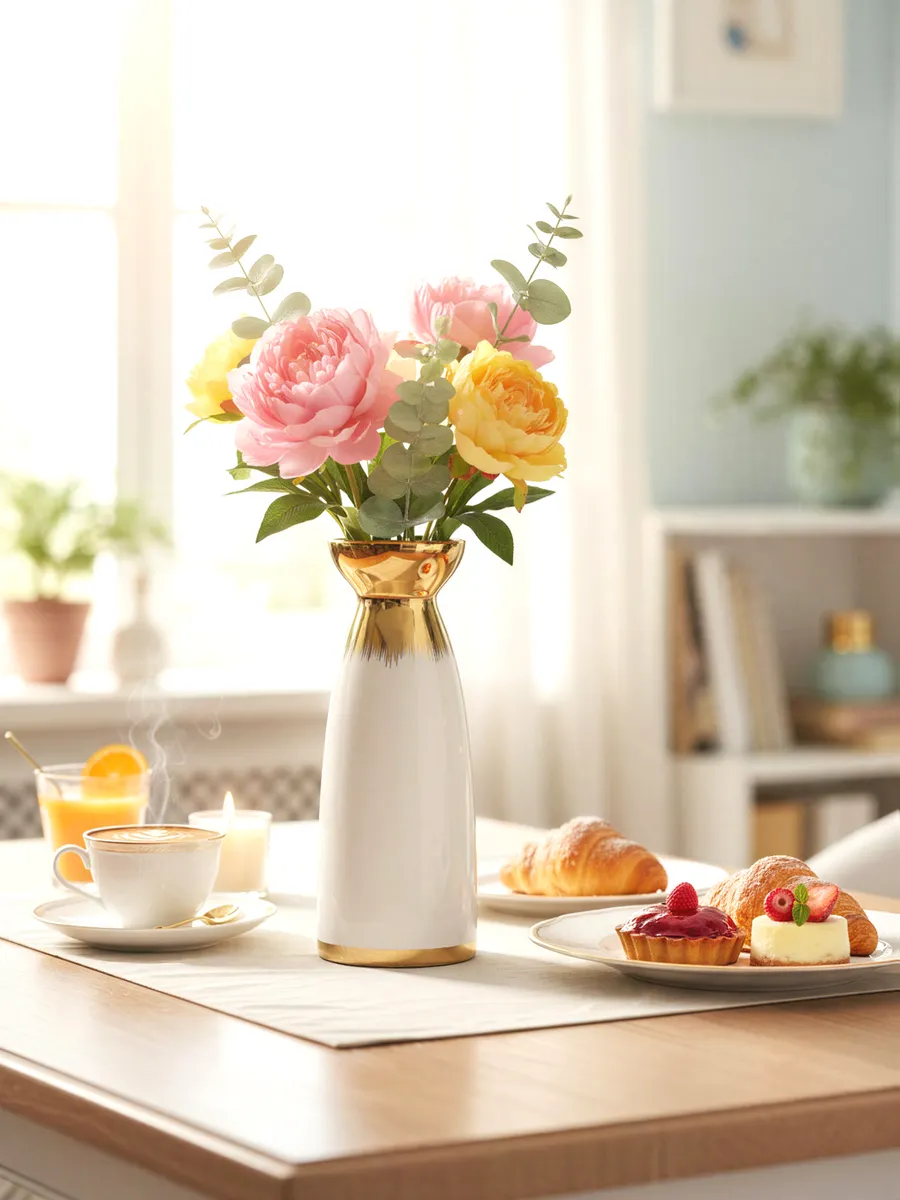 Керамические вазы для цветов всегда были символом утончённого вкуса! Эта модель особенно хороша тем, что золотистые детали добавляют нотку роскоши, не перегружая пространство. Именно то, что нужно для создания атмосферы уюта и элегантности!