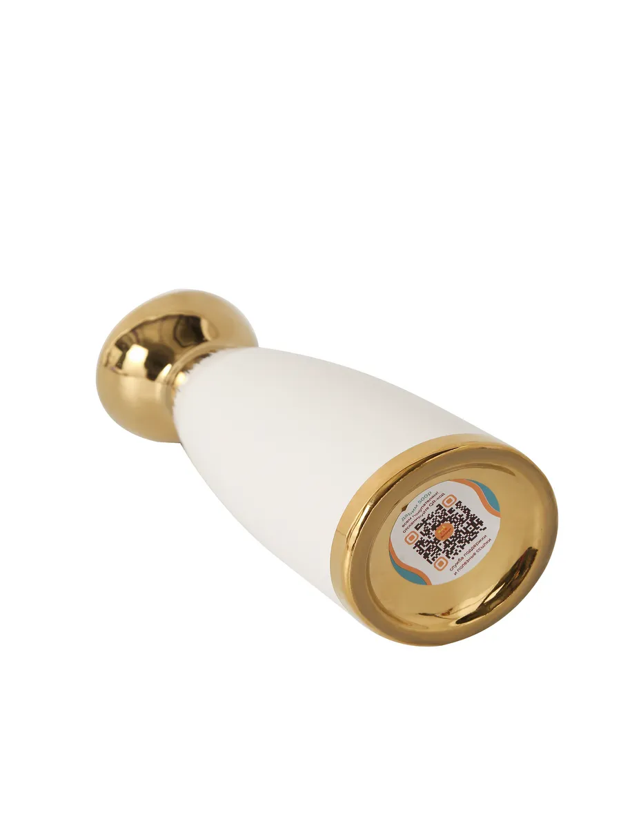 Декоративные элементы: Золотистое покрытие на горле и основании; глянцевая керамическая поверхность; контрастное сочетание белого и золотого