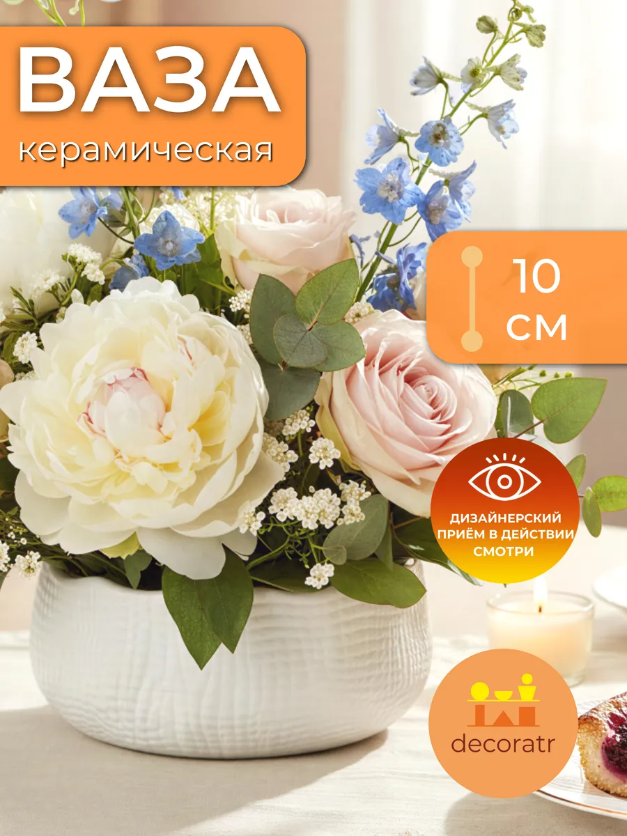 Эта изящная белая ваза из керамики станет идеальным дополнением для небольших букетов роз, тюльпанов, гербер или веточек эвкалипта. Компактный размер 10 см позволяет разместить её на журнальном столике, подоконнике или прикроватной тумбочке — везде, где нужна капелька весенней свежести!