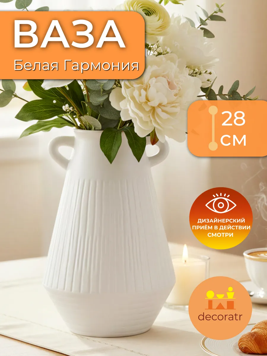 Представьте, как ваши любимые розы и пионы засияют в этой изысканной керамической вазе высотой 17 см! Ваза «Белая Гармония» — это воплощение утончённого стиля, которое мгновенно преображает любое пространство.