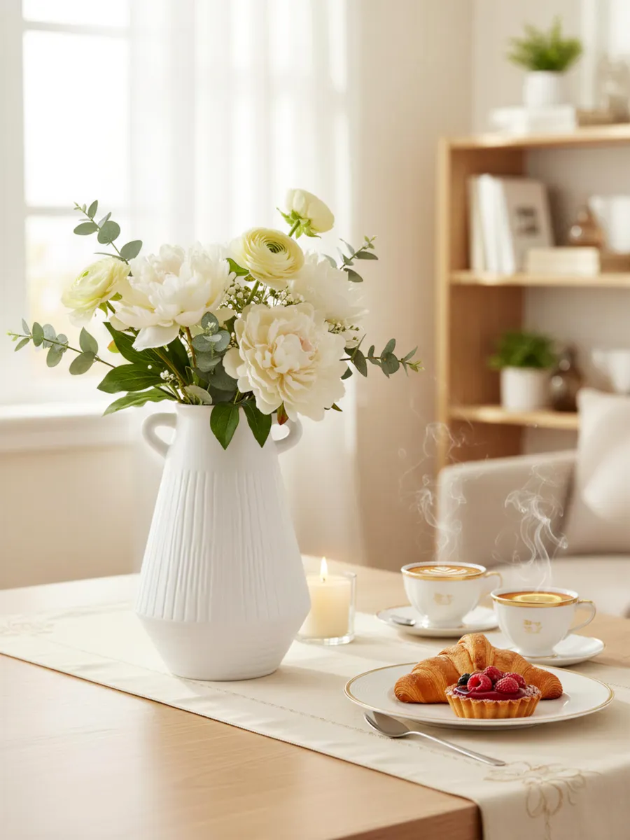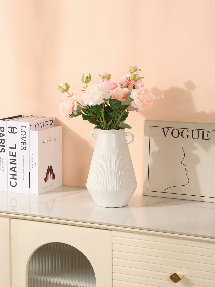 Белая ваза для цветов великолепно впишется в интерьер гостиной, спальни или кабинета. Она безупречно дополнит стиль минимализм и скандинавский дизайн, где ценится чистота линий и натуральные материалы. Керамическая поверхность легко очищается и сохраняет первозданный вид годами.