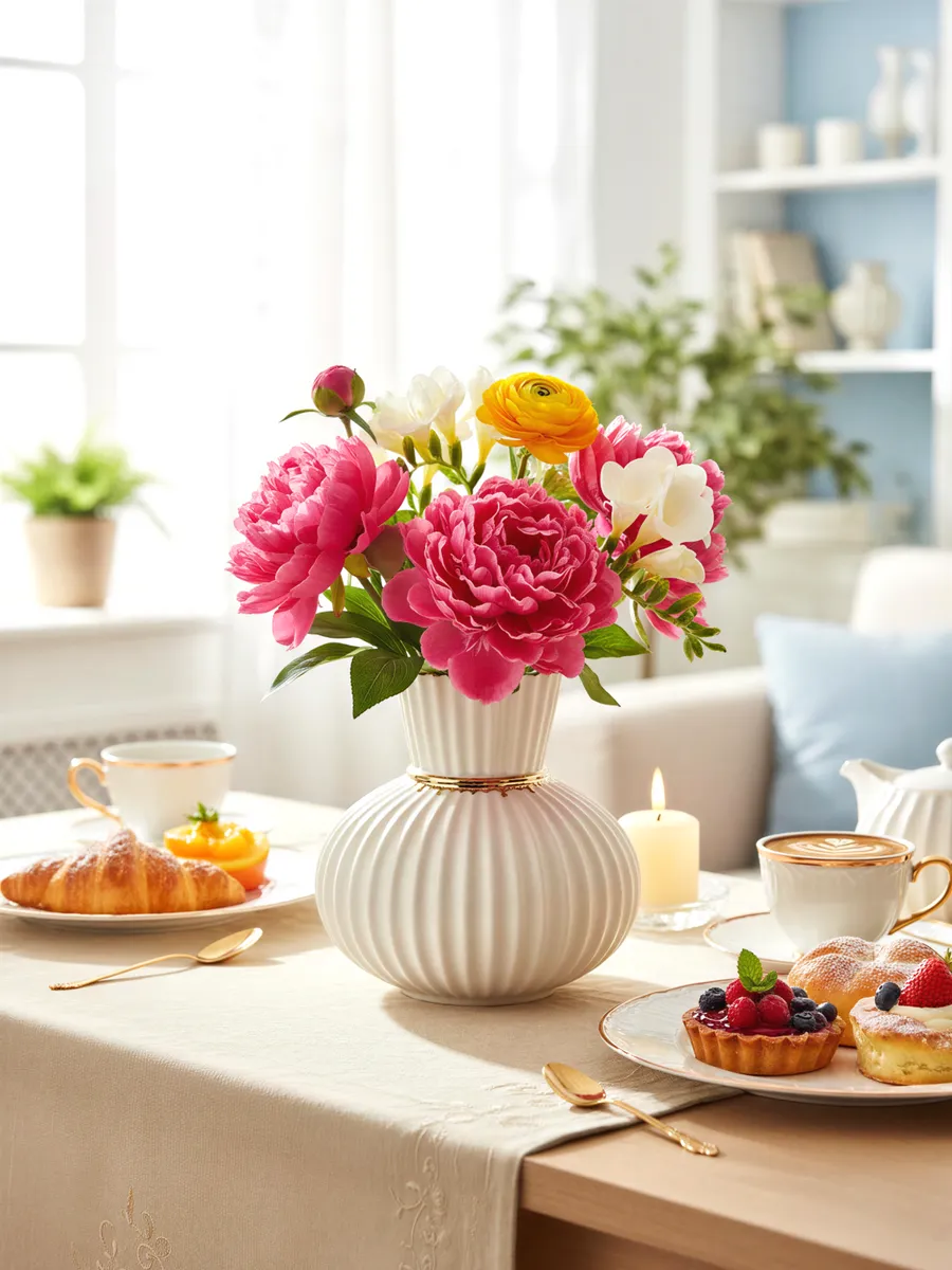Керамическая ваза настольная отличается устойчивой формой — даже случайное прикосновение не опрокинет ваш любимый букет. Качественная керамика легко моется и не впитывает запахи, сохраняя первозданную белизну долгие годы.