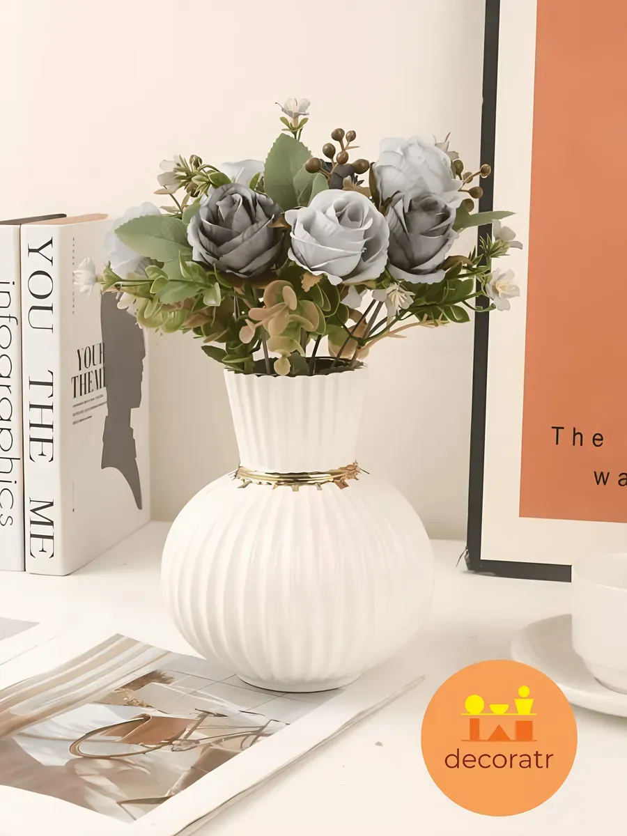 Белоснежная керамика с нежными вертикальными рифлениями словно создана для того, чтобы подчеркнуть красоту каждого цветка. Сферическая форма с элегантным золотистым ободком дарит ощущение завершённости и роскоши. Именно то, что нужно для создания атмосферы уюта!