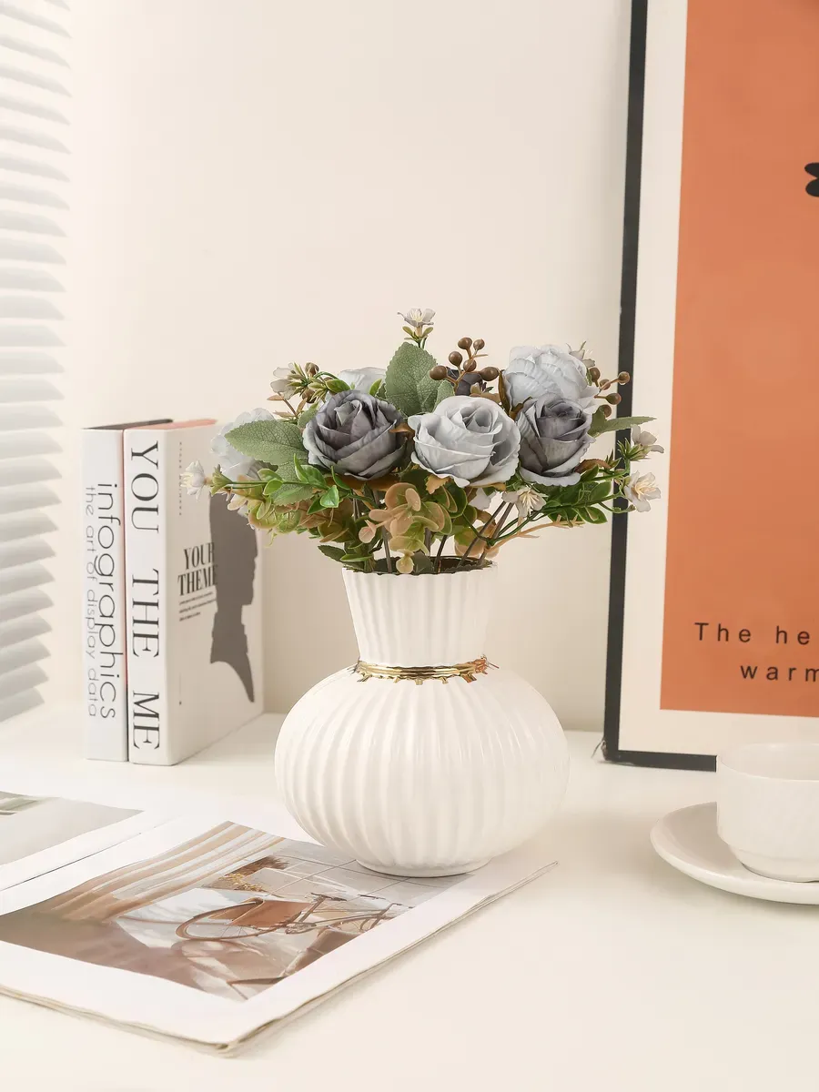Ваза для цветов в скандинавском стиле станет украшением гостиной, спальни или рабочего кабинета. Минималистичный дизайн с золотыми акцентами легко впишется в современный интерьер, добавив нотку изысканности без лишней помпезности.