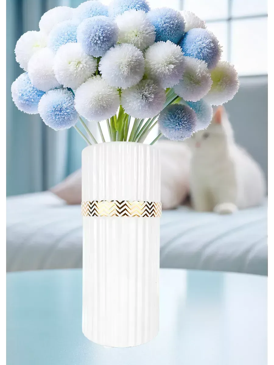 Цилиндрическая форма и устойчивое основание гарантируют, что ваши любимые цветы будут в безопасности даже при случайном касании. Белая ваза для интерьера универсально впишется в гостиную, спальню, кабинет или станет украшением ресторана.