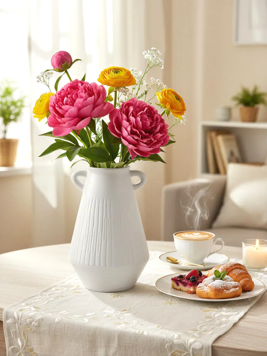Стиль: Скандинавский минимализм с элементами неоклассики — чистые линии, лаконичная форма и благородная белизна делают вазу универсальной для современных интерьеров