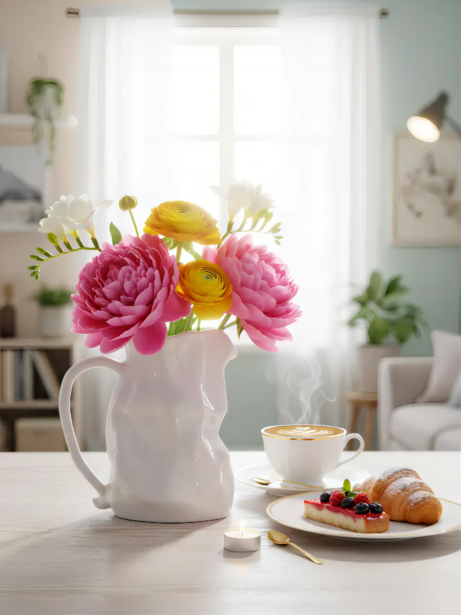 Почувствуйте гладкую, приятную на ощупь керамику, которая дарит ощущение уюта и тепла! Удобная изогнутая ручка не просто украшает — она превращает обычную вазу в произведение искусства, напоминающее старинный кувшин из французского прованса.