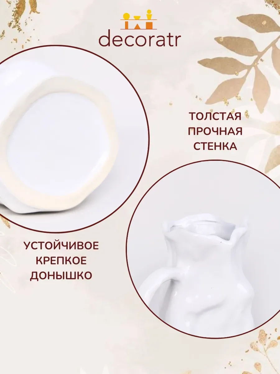 Белая ваза для интерьера станет изысканным акцентом в гостиной, спальне или на кухне. Она органично впишется в скандинавский стиль, минимализм или прованс, добавляя пространству воздушности и света. Deco-Decoratr рекомендует использовать её как центральный элемент композиции на обеденном столе или комоде.