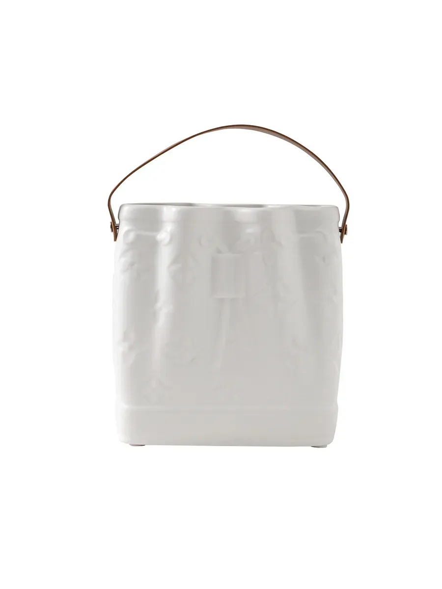 Ваза керамическая в виде сумочки, невысокая и средняя, высота 24 см, настольная, непрозрачная, матовая с тиснением.