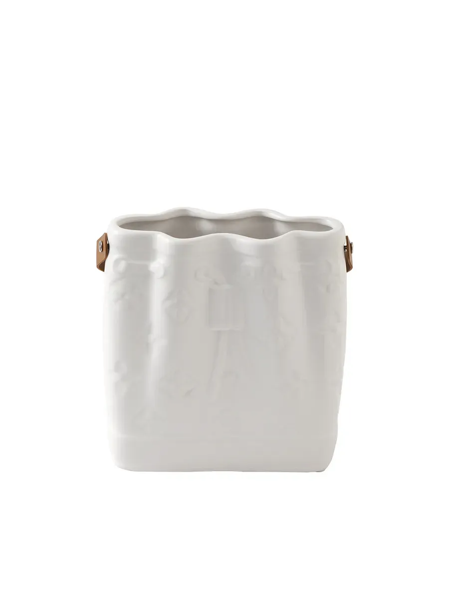 Представьте себе вазу, которая словно создана для того, чтобы стать центром внимания в вашем доме! Ваза «Белый узор» высотой 24 см — это не просто интерьерная ваза для цветов, а настоящий арт-объект, который мгновенно преобразит любое пространство. Белоснежная керамическая поверхность в сочетании с элегантной кожаной ручкой создаёт удивительный контраст между современностью и классикой.