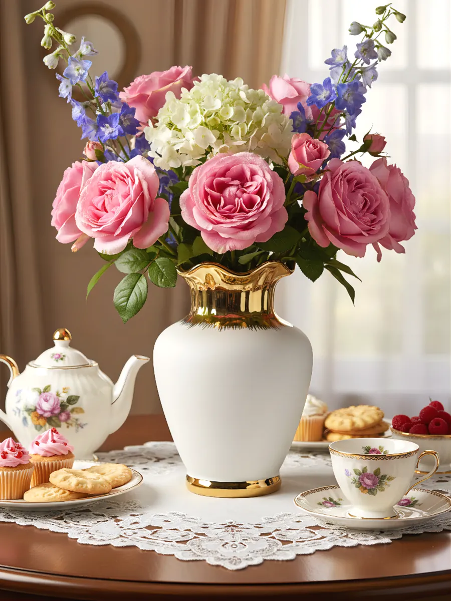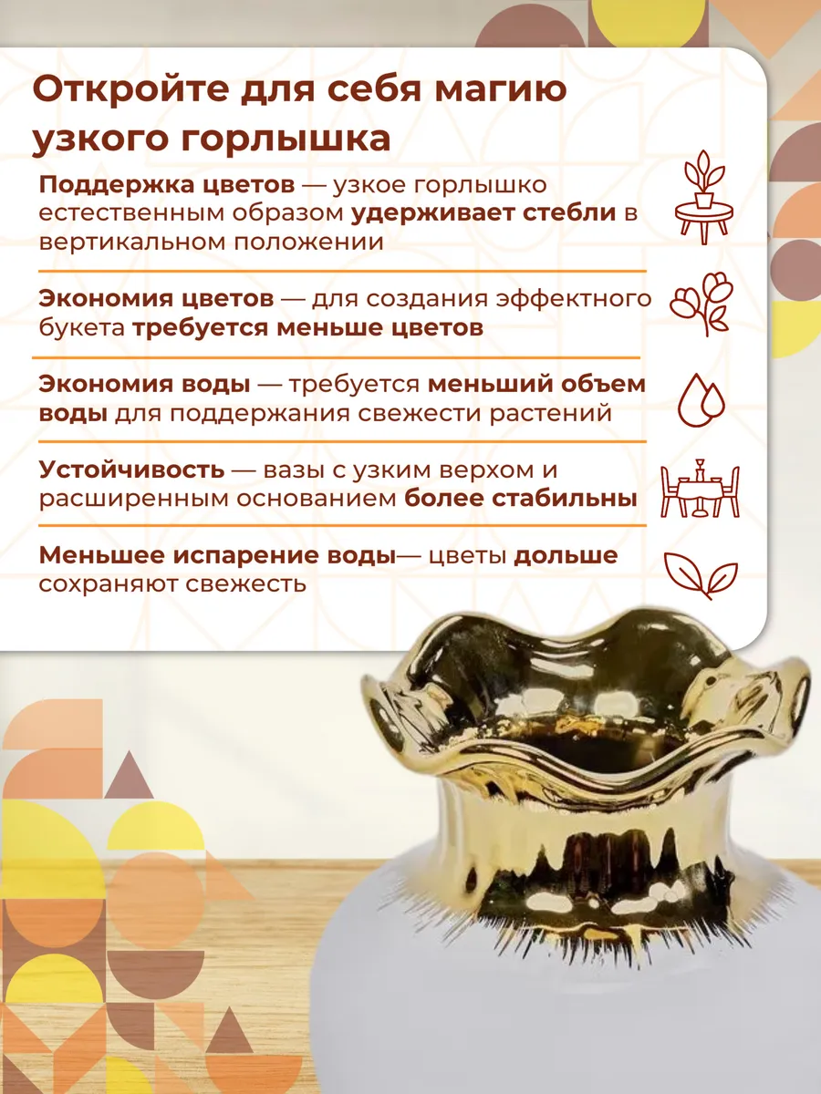 Керамическая ваза для цветов с золотой каймой — роскошь в каждой детали!