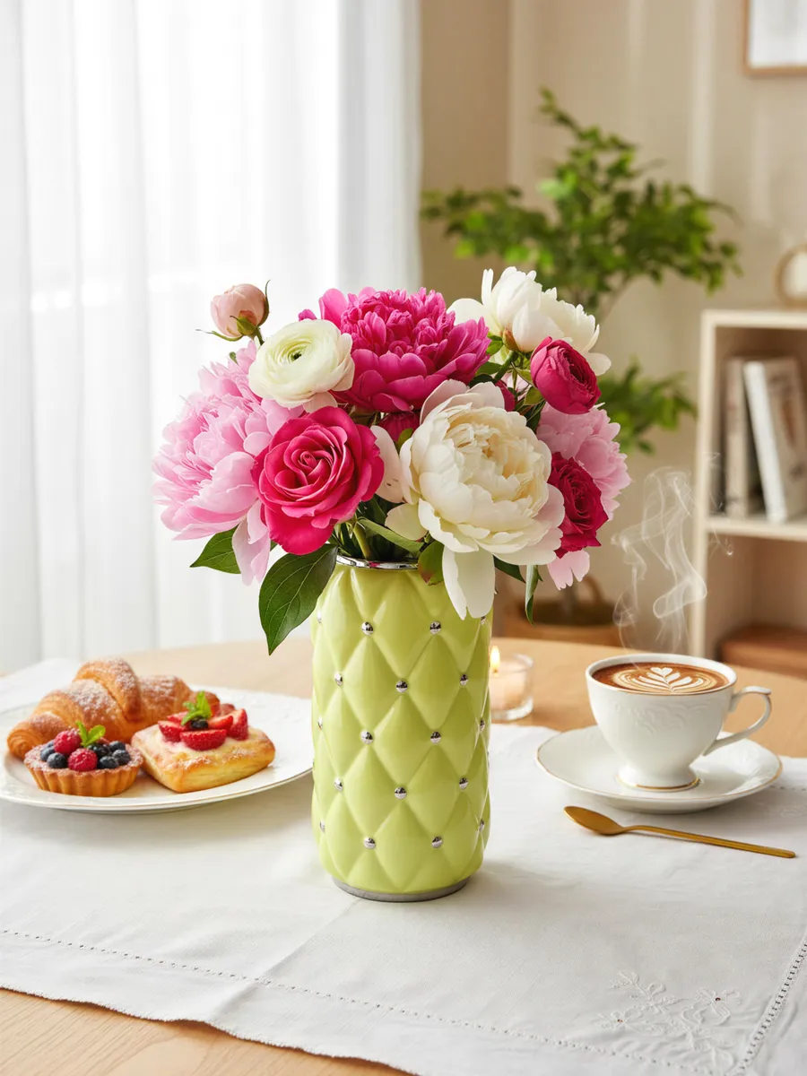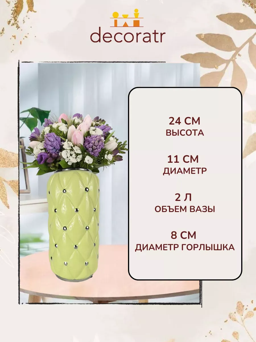 Идеальные размеры позволяют разместить букеты из роз, тюльпанов, пионов или стильные композиции из сухоцветов. Устойчивое дно и продуманная форма гарантируют, что ваши любимые цветы будут в полной безопасности!