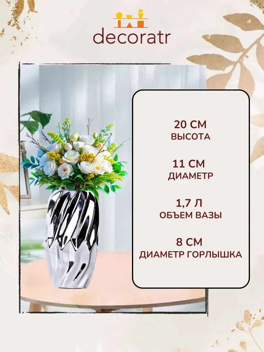 Представьте, как ваша гостиная мгновенно наполняется роскошью и современным шиком! Ваза «Серебряная волна» высотой 20 см — это не просто керамическая ваза для цветов, а настоящий арт-объект, который превратит любое пространство в галерею современного искусства.