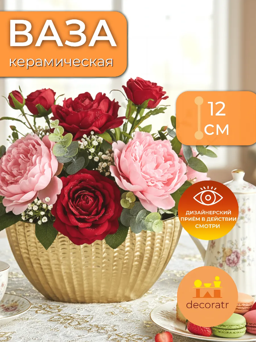 Ваза керамическая для цветов золотистая с рельефом 12 см!