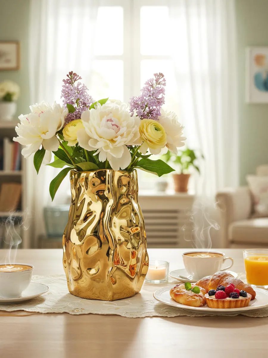 Керамическая основа гарантирует долговечность, а устойчивая форма обеспечивает безопасность даже самых пышных букетов. Уход простейший — достаточно протирать мягкой тканью, сохраняя первозданный блеск на годы.
