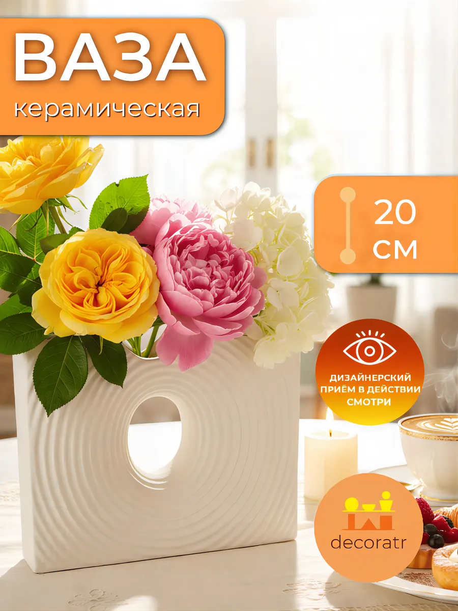 Представьте, как эта изящная керамическая ваза высотой 20 см мгновенно преображает ваше пространство! Ваза «Лунный диск» — настоящее произведение современного дизайна, которое заставляет остановиться и восхититься каждого, кто входит в комнату.