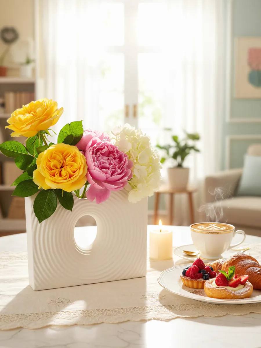 Керамика высокого качества гарантирует долговечность, а устойчивое основание обеспечивает безопасность — ваза не опрокинется даже при случайном касании.