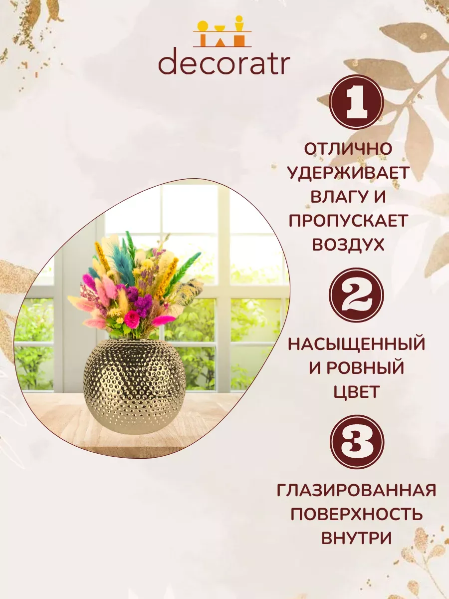 Керамика здесь не просто материал — это настоящий герой нашего времени! Крепкая и прочная конструкция радует не только глаз, но и руки. Высококачественный материал говорит сам за себя: служить будет долго и счастливо! Устойчивое дно позаботится о том, чтобы цветы или сухоцветы оставались на своем месте. А еще ваза интерьерная покрыта качественной акриловой краской как снаружи, так и изнутри – это вам не просто красиво, а очень практично!