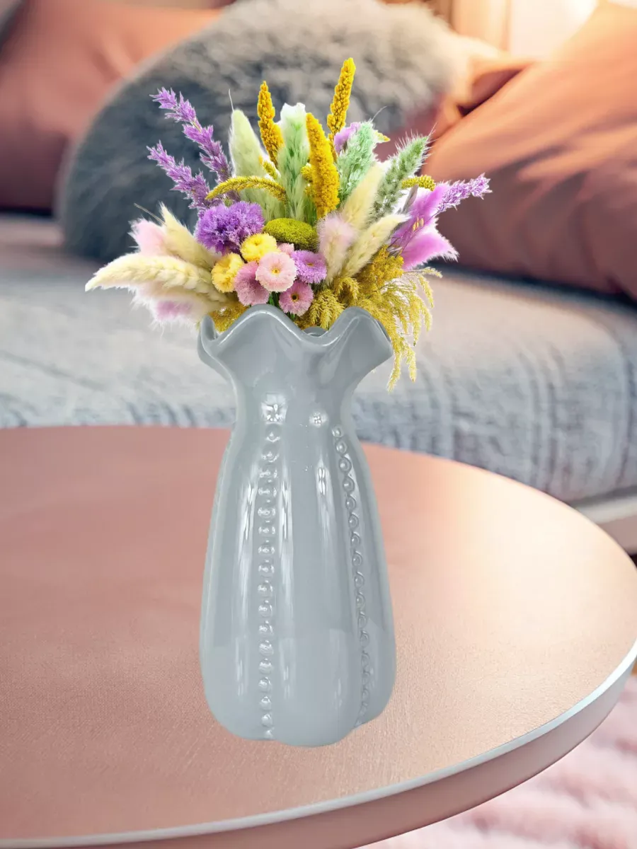 Вазочка подходит для живых цветов. Использовать можно и для сухоцветов. Прочный материал и качественное покрытие.
