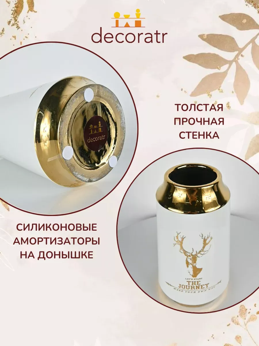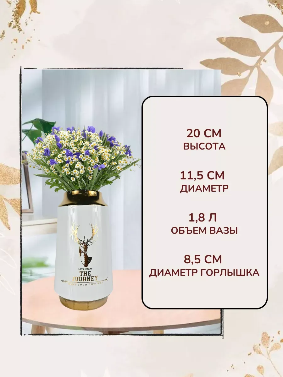 Ваза керамическая белая с золотом, невысокая и средняя, высота 20 см, настольная, глянцевая и непрозрачная, с рисунком. Вазочка подходит для живых цветов. Использовать можно и для сухоцветов. Прочный материал и качественное покрытие. Красивая ваза — это универсальный подарок для любой женщины. Этот декор для дома станет ярким и необычным акцентом в вашем интерьере.Создайте волнение и…