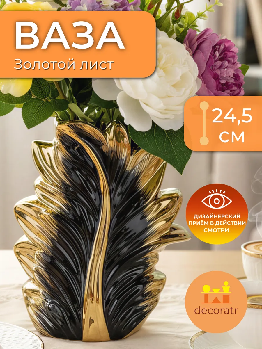 Керамическая ваза для цветов в форме листа — роскошь золота в вашем доме!