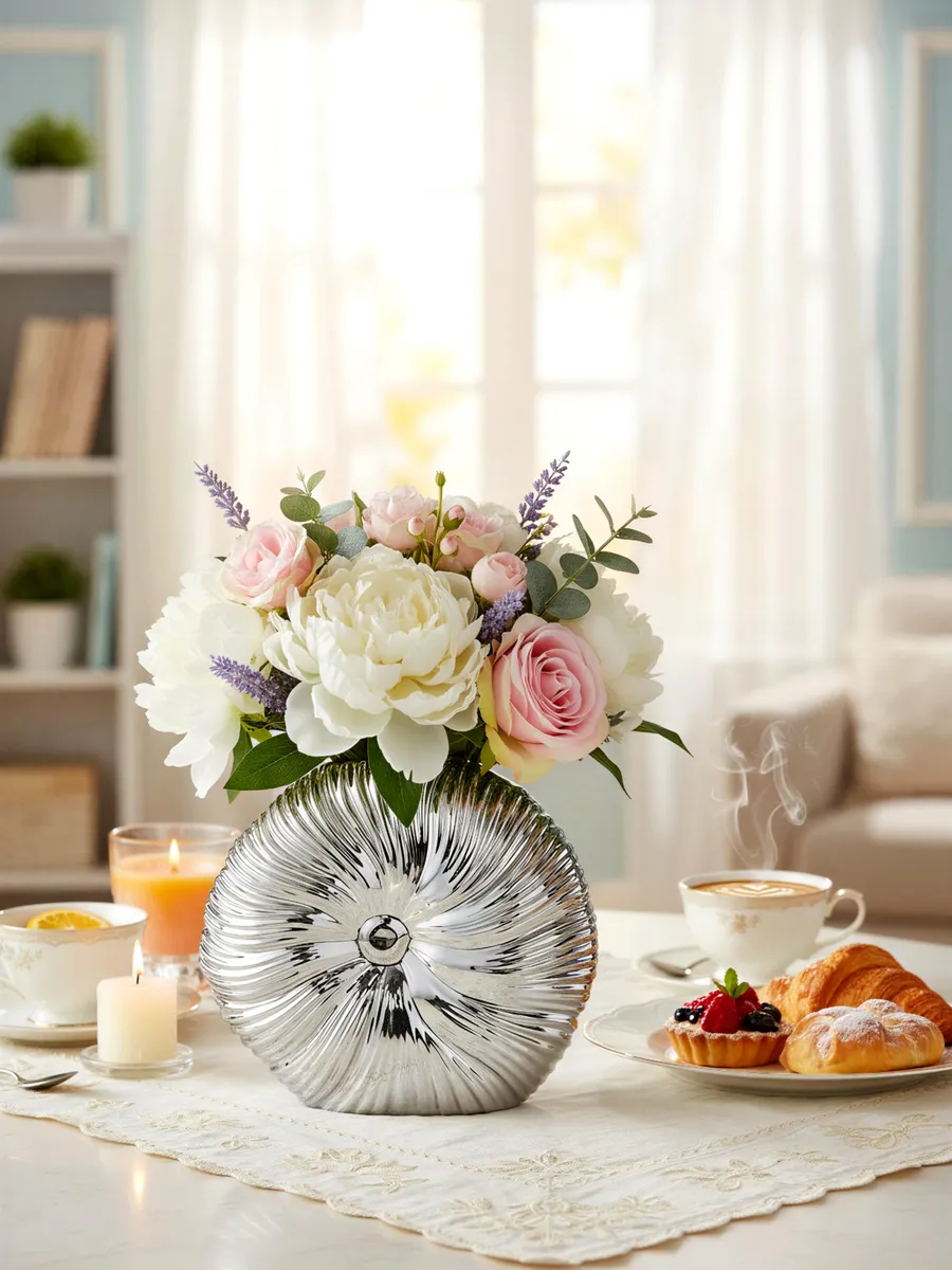 Эта ваза декоративная станет идеальным домом для роз, пионов, тюльпанов или элегантных сухоцветов. Её размеры позволяют создавать как пышные букеты, так и минималистичные композиции из нескольких веточек. Представьте, как великолепно будут смотреться в ней серые розы или белые хризантемы!