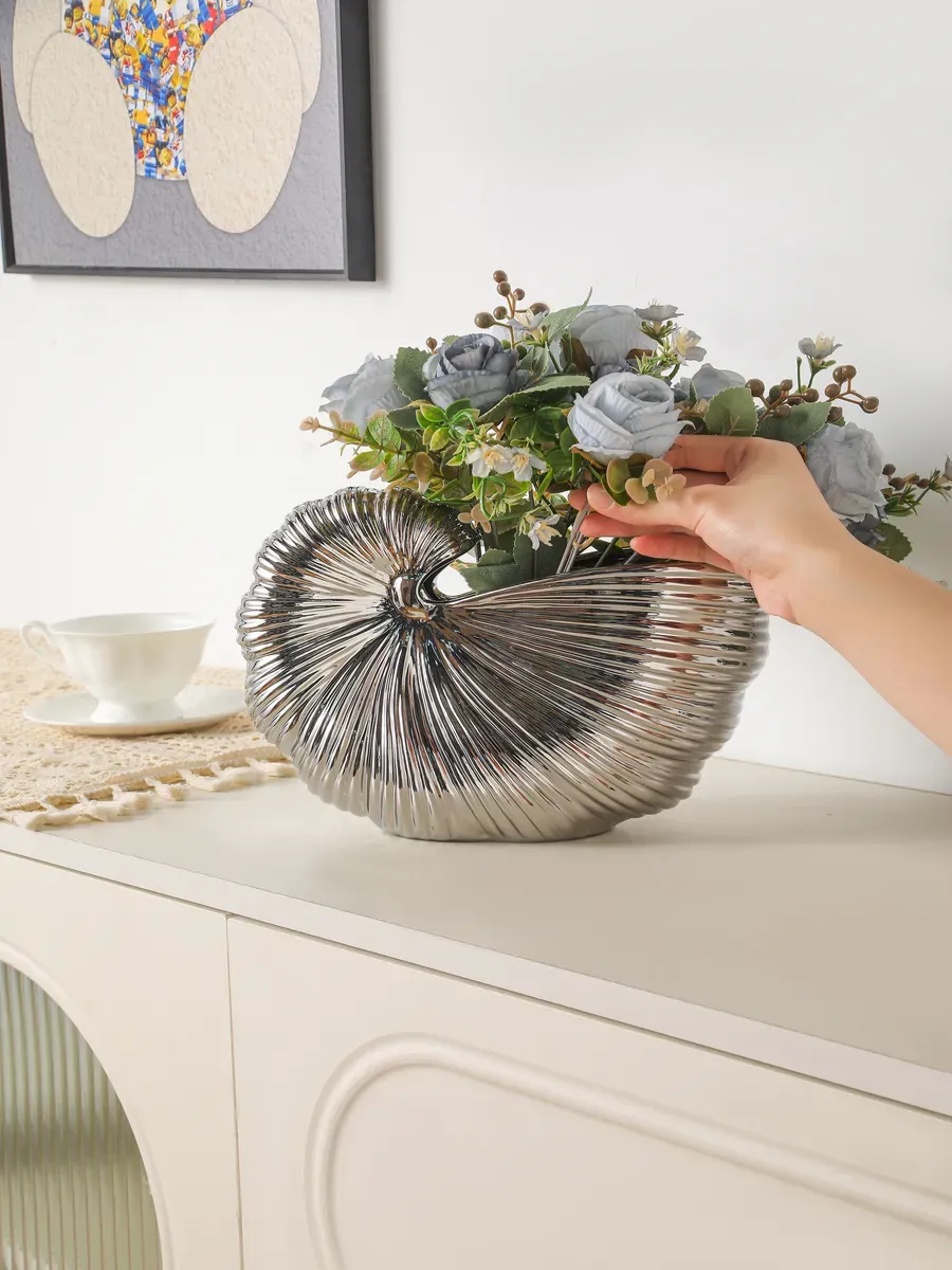 Эта декоративная ваза для дома идеально подходит для одиночных роз, тюльпанов или элегантных веточек сухоцветов. Компактный размер делает её универсальной — разместите на журнальном столике, комоде или полке. Ваза в форме ракушки станет центром внимания в гостиной, спальне или кабинете.