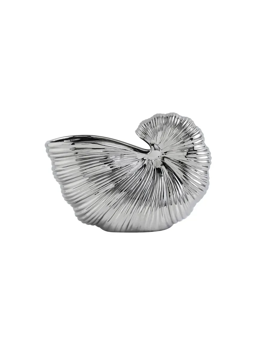 Серебристая керамика с зеркальным блеском переливается на свету, как настоящая морская раковина. Каждая рифлёная линия создаёт игру света и тени, превращая обычный интерьер в произведение искусства. Холодная гладкость керамики в руках напоминает прикосновение к морской волне — такая же свежая и завораживающая.