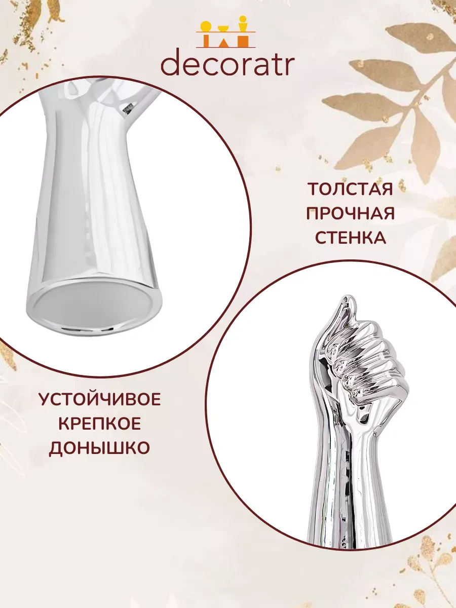 Представьте, как ваши гости замирают от восхищения, увидев этот шедевр! Ваза для букетов в виде руки — это подарок, который запомнится навсегда. Идеальный выбор на Новый год и Рождество, новоселье, свадьбу или день рождения. Подарите близким не просто вазу, а целую историю!