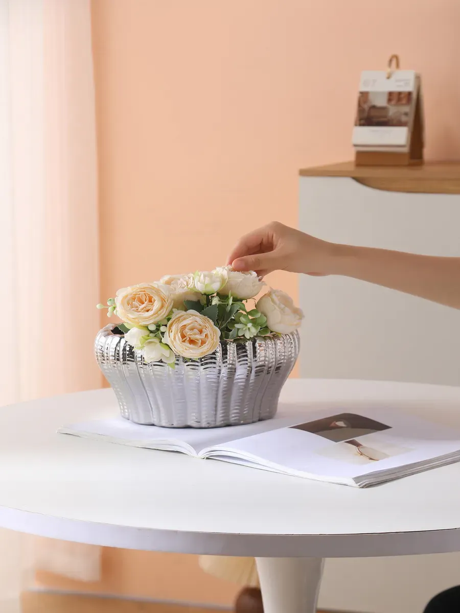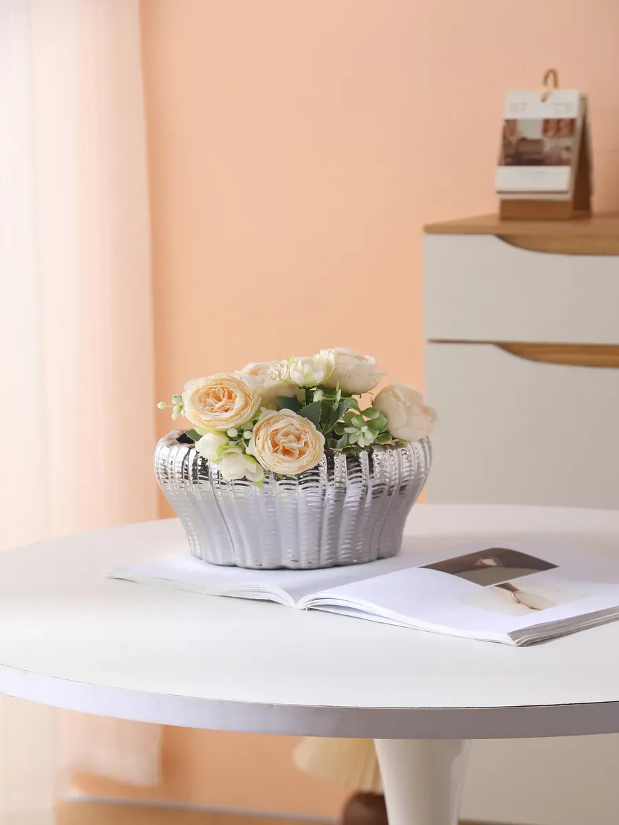 Эта декоративная ваза идеально подходит для пионов, роз, тюльпанов и даже сухоцветов. Широкое горлышко позволяет создавать роскошные композиции, а устойчивое основание гарантирует безопасность вашего букета. Размеры 20×23,5 см делают её универсальной для любого помещения — от уютной спальни до представительной гостиной.