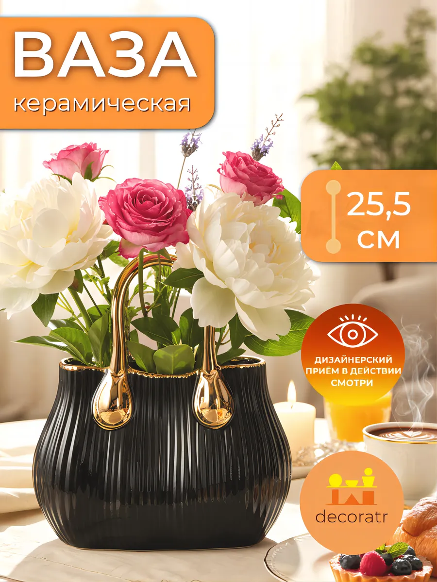 Представьте, как эта элегантная ваза высотой 25,5 см преобразит ваше пространство! Ваза «Золотая сумочка» — керамическая интерьерная ваза для цветов в уникальном дизайне, напоминающем стильную женскую сумку. Вот это да! Именно то, что нужно для создания неповторимой атмосферы в доме.