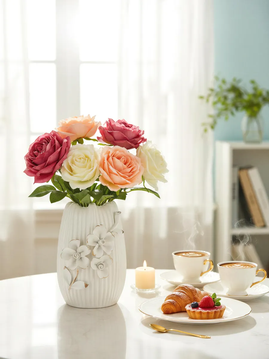 Керамические вазы для интерьера никогда не выходят из моды, а эта модель особенно гармонично впишется в стили прованс, сканди или классический интерьер. Белая ваза для цветов станет акцентом в гостиной, спальне или на кухне, добавляя нотки французского шарма.
