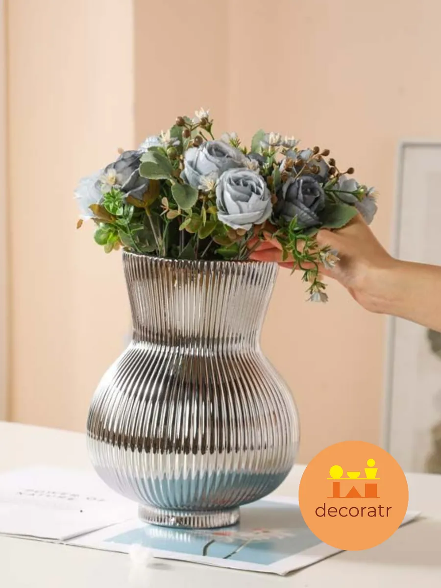 Представьте себе вазу, которая словно создана из застывшего света! Ваза «Серебряный Блеск» высотой 24,5 см — это настоящая жемчужина интерьера, способная преобразить любое пространство одним своим присутствием.