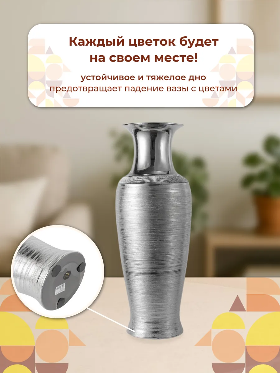 Представьте: ваза высотой 88 см, которая словно скульптура современного мастера украшает пространство! Ваза «Серебряный блеск» — это керамическая напольная ваза для цветов, которая мгновенно преображает любой интерьер.