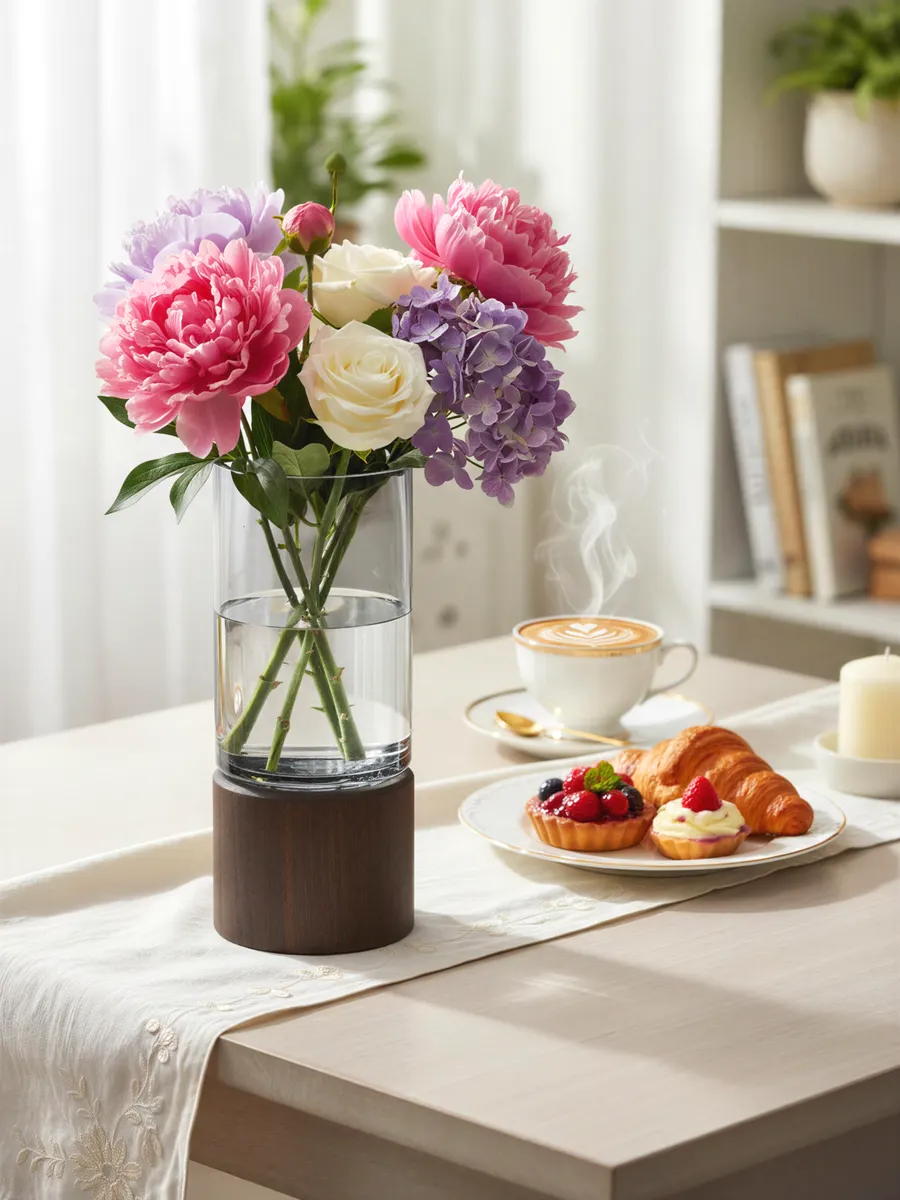 Ваза стеклянная для цветов с деревянным основанием — элегантное решение для современного интерьера!